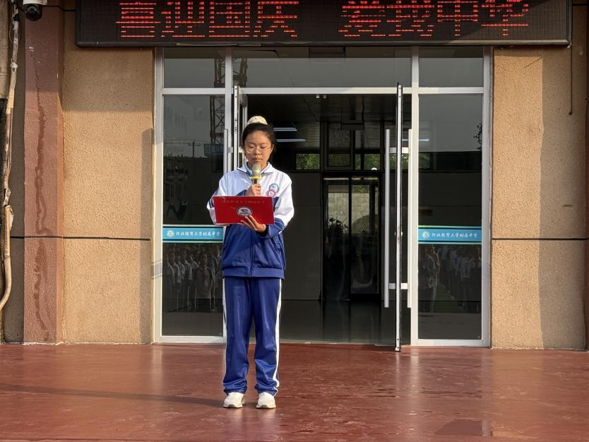 2025年9月28日,河北经贸大学附属中学在学校操场隆重举行了升旗仪式。本次仪式由八年级2班陆梦霏同学负责主持,全体师生共同参与,以庄严而富有青春气息的形式,迎接中华人民共和国成立76周年华诞。