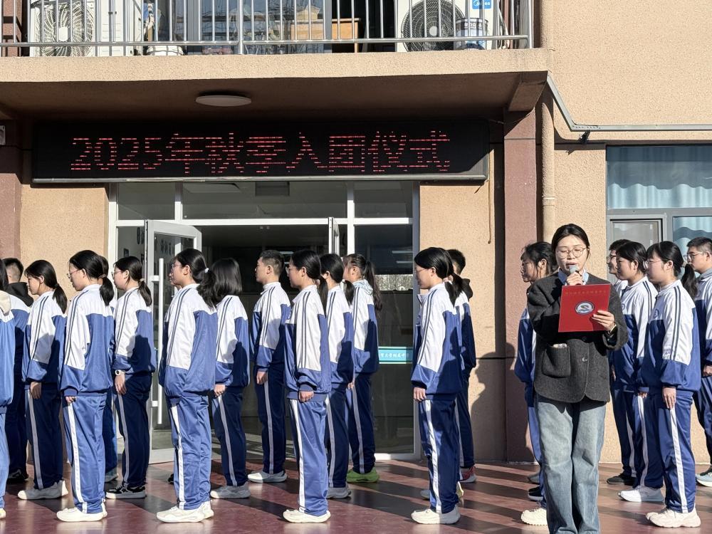 仪式现场,团支部书记段秀丽老师宣读了2025年秋季新团员名单,念到名字的新团员们精神抖擞、意气风发,满怀着激动与自豪。