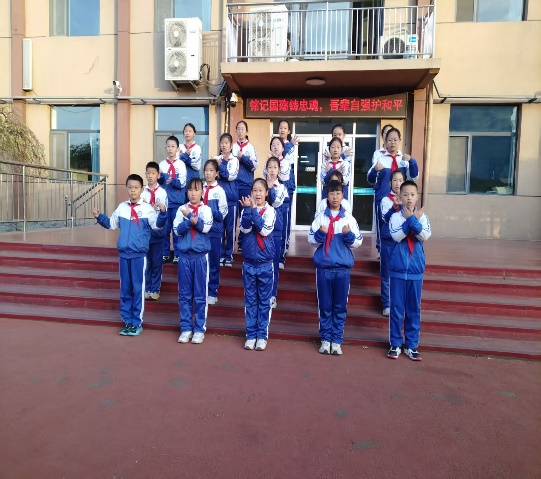 演讲结束之际,五年级(1)班的同学们表演手势舞《中华少年》。今天的我们,不用再躲进防空洞,不用再啃着树皮赶路,但“和平”从来不是天上掉下来的礼物——是戍边战士在雪山上站成的界碑,是科研人员在实验室熬白的头发,是每个普通人把“好好生活、努力成长”变成的底气。我们的书包里装的不只是课本,更是“守护和平”的接力棒;我们的笔写下的不只是作业,更是“振兴中华”的承诺,也是作为新时代少年,必须扛起的守护和平、振兴中华之责任。